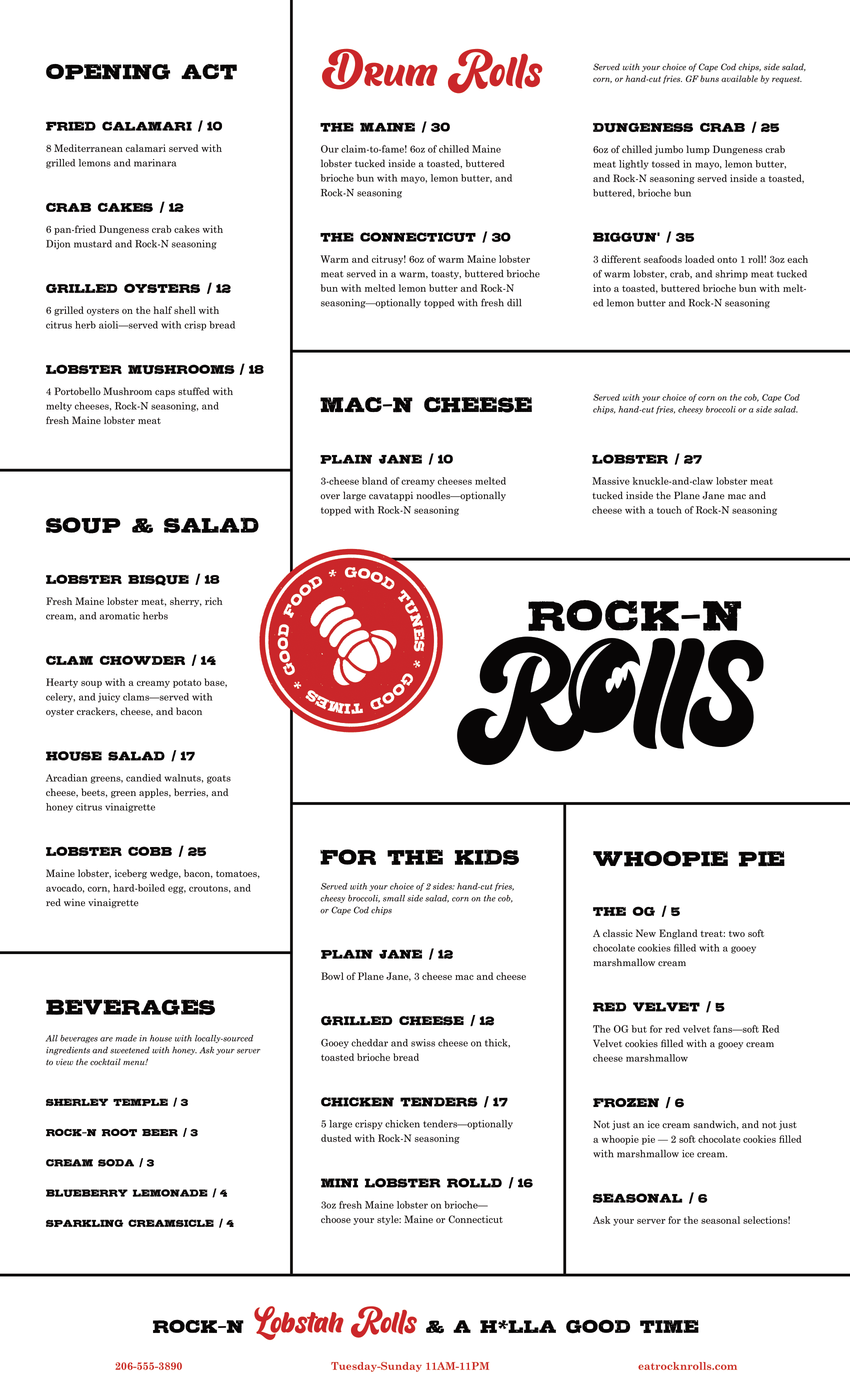 Rock-N RollsRock-N Rolls is a restaurant that blends lobster rolls with rock music. It is made for families, foodies, and music enthusiasts! This project blends typography, app design, and more for a cohesive user experience.